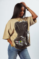 - Drop shoulder style (boxy fit)